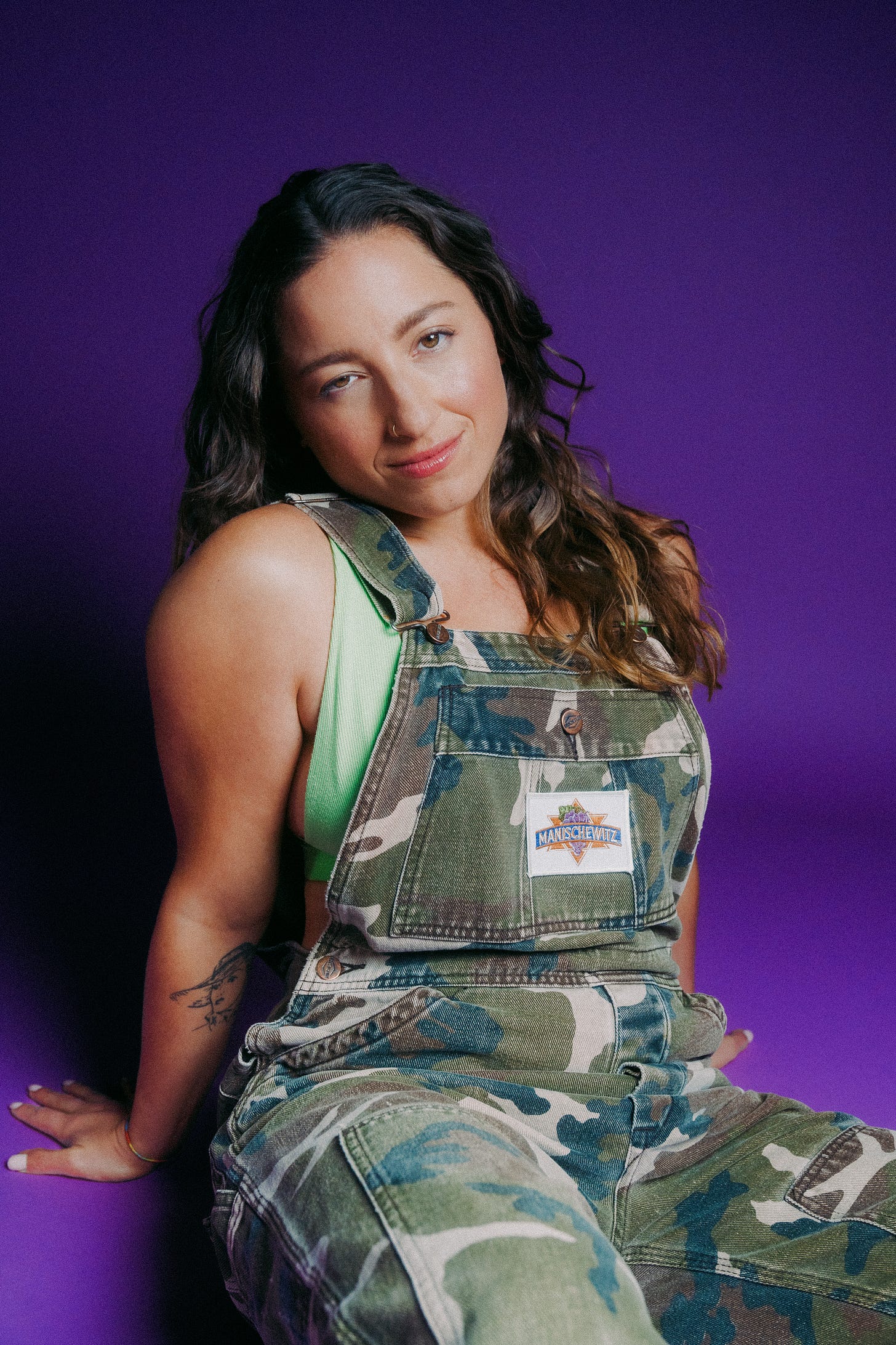 Baby is my inner child. A zeesa punim (Yiddish for: sweet face). Cute, not hot. She reminds me to never forget to play. There is time. Grow up, not old. Skin tan, nails done, matcha, maple syrup, vodka lemon, hyper green, hot pink. Her vices: Being too innocent (read: naive, stunted) and having a sweet tooth (golosa)—addicted to sugar & attention. Sunset Baby is her debut, although she definitely showed up on my first album, Soakt. Past Loves is a Baby song.
